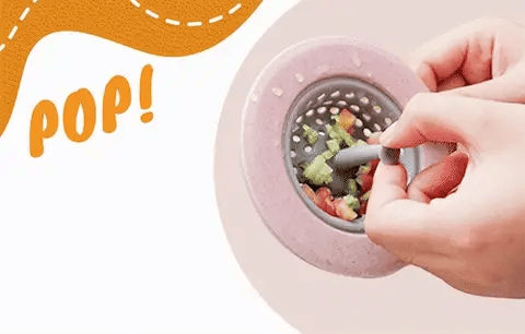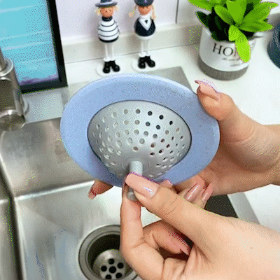 Easily clear all dirty debris with no touching! This smart, durable silicone basket effectively catches all hair, food scraps, kitchen waste, and lets you pull the handle for thorough cleaning!