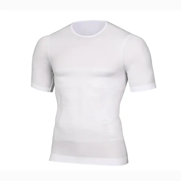 360° Scientific Shaping design and compression body t-shirt helps you flatten abdomen, firm tummy, hides"man boobs"and"beer belly"immediately.